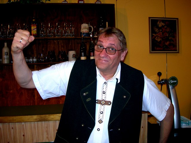 wird er von seiner Bedienung Gundi, die auch vor schlagkräftigen
