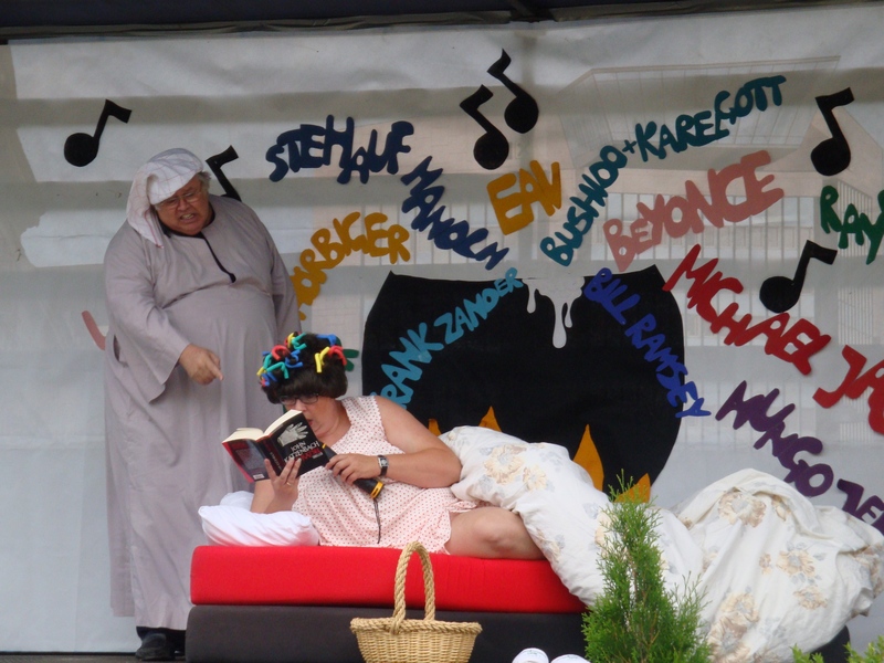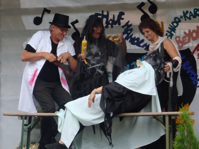 Am Donnerstag den 11. Juni 2009 (Fronleichnam) fand traditionellerweise bereits das 7. SPESSTRI vor dem kleinen Stadtkaffee (alias Bruno) statt. Bei bewölktem Himmel ließ es sich leider auch nicht vermeiden, dass der eine oder andere Regentropfen vom Himmel fiel. Dennoch ließen es sich mehr Zuseher als in den Jahren davor nicht nehmen, dem 7. SPESSTRI beizuwohnen. Allen voran Bürgermeister Friedrich QUIRGST, Vizebürgermeister Gustav EWALD sowie zahlreiche Stadt- und Gemeinderäte aller Fraktionen (der Ordnung halber sei erwähnt, dass der Gemeinderat im März 2009 von der NÖ Landesregierung aufgelöst wurde). Darüber hinaus freute sich der Stadttheater-Verein über den Besuch der lokalen Presse wie NÖN und Gänserndorfer Bezirksblätter sowie die Anwesenheit hochrangiger Vertreter der Sponsoren wie z.B. Rauchfangkehrer Johann KOLM. Auch im Publikum vertreten war die SJ Deutsch-Wagram. Das SPESSTRI stand unter dem Motto "Ein Kessel Buntes". Der musikalische Bogen spannt sich von aktuellen Hits aus den Charts über gespenstisches bis hin zu Liedern aus dem alten Wien von Hans Moser und Paul Hörbiger. Der Wirt und die Wirtin waren um das leibliche Wohl der Gäste bemüht und boten kulinarische Köstlichkeiten wie Spareribs oder Erdbeerschnitte an. Man darf also auf das 8. SPESSTRI am 3. Juni 2010 gespannt sein.